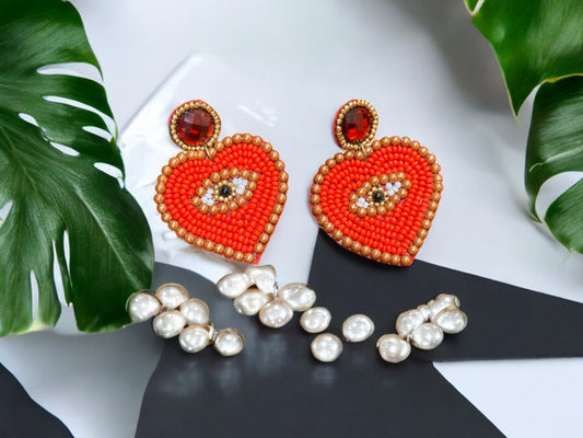 Heart Evil Eye Handbeaded Earrings