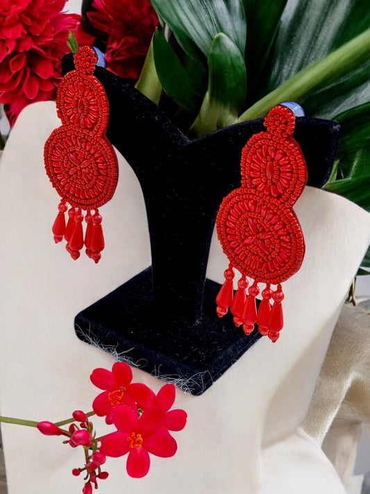 Red Dangle Handbeaded Earrings
