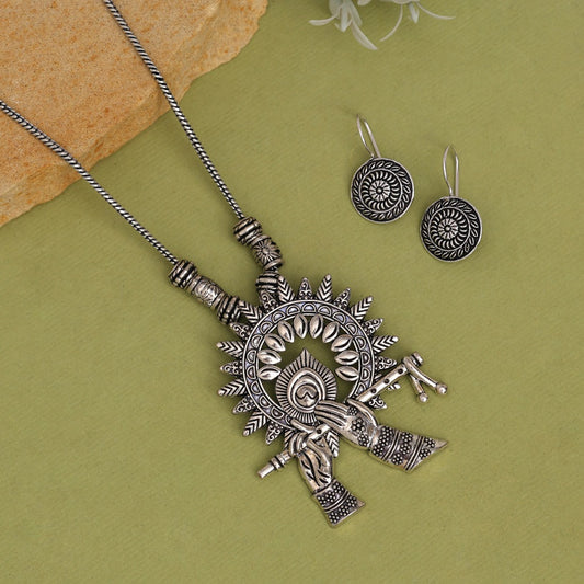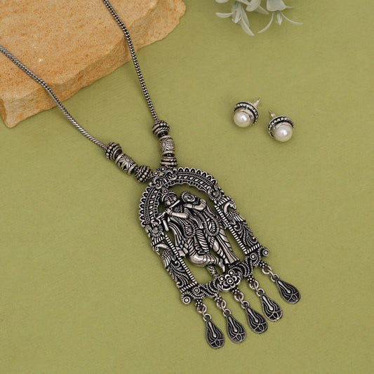 Silver Oxidised Radha Krishna Necklace Set