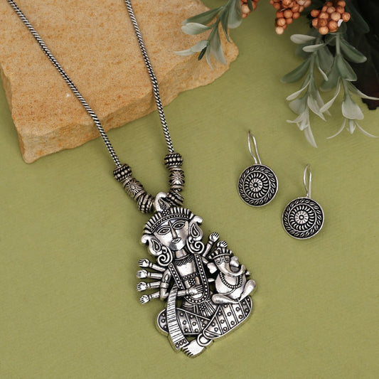 Silver Oxidised Goddess Necklace Set